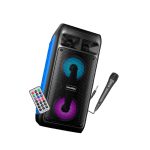 علاوه بر نوع اتصال و پخش موزیک های آن، این اسپیکر KAKUSIGA دارای دو عدد بلندگوی می باشد که به صورت دوگانه می تواند صدایی با قدرت ۱۰ وات پخش کند. صدای ارتقا یافته در این اسپیکر به شما کمک می کند، آهنگ های قدیمی را نیز با کیفیت و وضوحی متفاوت گوش دهید. بلندگو های دوگانه صدای فوق العاده ای را با بیس قدرتمندی پخش می کنند تا بتوانید از موسیقی های خود در مهمانی های خود لذت ببرید. همچنین این اسپیکر KAKUSIGA مدل 671 از یک باتری از نوع لیتیومی بهره می برد که ظرفیت آن ۱۸۰۰ میلی آمپر ساعت می باشد. این باتری می تواند به مدت دو الی سه ساعت به طور مداوم برای شما کار کند و موزیک ها را به راحتی بخش کند. یکی دیگر از قابلیت های اسپیکر بلوتوثی مدل ۶۷۱ این است که به همراه یک میکروفون سیم ارائه می شود که طول سیم آن دو متر می باشد و می توانید از آن برای سخنرانی در مهمانی و جشن های خود استفاده کنید. این میکروفون می تواند صدای شما را واضح تر بدون نویز به گوش اطرافیان شما برساند. و ما طراحی بی نظیر آن به همراه نورپردازی با چراغ های رنگارنگ ال ای دی فضای اطراف را زیباتر و بهتر جلوه می دهد.